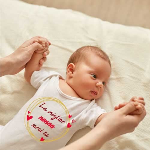 Body neonato a maniche corte con stampa come in foto in tessuto 100% cotone interlock ring spun per un tessuto piu' fine liscio e omogeneo