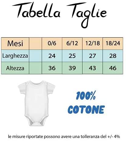 Taglie: 0/6 mesi 6/12 mesi 12/18 mesi 18/24 mesi (per le misure vedi foto con tabella taglie)