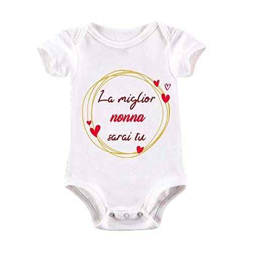 La Ruotante Body neonato in 100% cotone manica corta miglior nonna amore cocco leggere regalo auguri nascita tutina (7, 6-12 mesi)