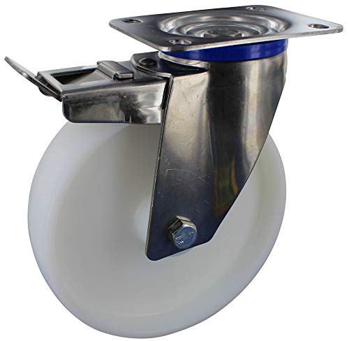 Ruote in acciaio inox con fermo Ø 200 mm in poliammide piastra di avvitamento