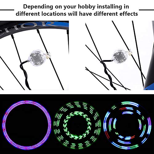 【4 luci per raggi separati per 3 modalità di cambiamento】 ogni luce ha 4 luci indipendenti per una ruota con cavi da 27 cm, è possibile aggiungerle ovunque si desideri per diverse prestazioni di illuminazione.