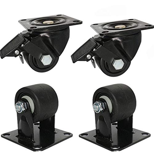 4pz Ruote Girevole Industriale Heavy Duty,Rotelle per Mobili in Nylon,Nero,Piastre Superiori a 360°,Centro di Gravità Basso,Resistente all'usura,Carico Massimo 1200kg (3in/75mm,fisso+freni)
