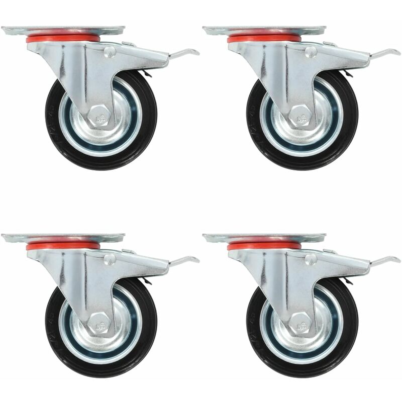 Colore: nero Materiale: gomma e ferro zincato Diametro ruota: 75 mm Dimensioni vassoio: 81 x 67 mm (L x L) Portata massima: 50 kg (per ruota) La consegna include 4 ruote piroettanti con doppio freno Buona qualità-- 1. Le rotelle sono realizzate in gomma con buona resistenza agli urti e alle vibrazioni. 2. La superficie morbida può proteggere efficacemente il pavimento dai graffi. 3. Il telaio in ferro zincato è altamente resistente alla ruggine, il che aumenta la robustezza e la durata della ruota girevole. 4. La capacità di carico massima di ciascuna ruota girevole è di 50 kg. Accessori perfetti-- 1. 4 rotelle girevoli saranno l'accessorio perfetto per piccole attrezzature e mobili. 2. Come banchi da lavoro, carrelli, tavolini da caffè, scaffali per piante, scaffali, carrelli della spesa, ecc.