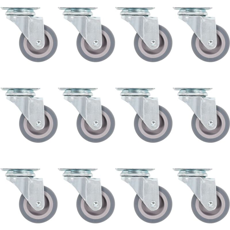 Forte e solido-- 1. Le rotelle sono realizzate in materiale TPR, che ha una buona resistenza agli urti e alle vibrazioni. 2. Il telaio in ferro zincato è altamente resistente alla ruggine, il che aumenta la robustezza e la durata della ruota universale. 3. La superficie morbida può proteggere efficacemente il pavimento dai graffi. 4. La capacità di carico massima di ciascuna ruota girevole è di 35 kg. L'accessorio perfetto - 1. 12 rotelle girevoli saranno l'accessorio perfetto per piccole attrezzature e mobili. 2. Come banchi da lavoro, carrelli, tavolini da caffè, scaffali per piante, scaffali per libri, cesti della spesa, ecc. Colore: grigio Materiale: TPR (gomma termoplastica) e ferro zincato Diametro ruota: 50 mm Larghezza ruota: 20 mm Dimensioni vassoio: 50 x 50 mm (L x L) Distanza tra i fori: 36 x 36 mm Altezza di costruzione: 70 mm La consegna include 12 ruote piroettanti
