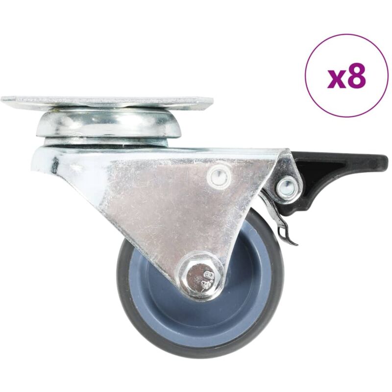 Questo set, composto da 8 rotelle gemellate, costituisce l'accessorio perfetto per attrezzature e mobili di piccole dimensioni come banchi da lavoro, carrelli, tavolini da caffè, piantane, scaffali, carrelli della spesa, etc. Le ruote sono realizzate in TPR (gomma termoplastica) che si distingue per una buona resistenza agli urti e alle vibrazioni, consentendo a queste ruote di girare silenziosamente e senza problemi. La loro superficie morbida inoltre, protegge efficacemente il pavimento dai graffi. La struttura in ferro zincato è altamente resistente alla ruggine, garantendo pertanto maggiore robustezza e la durata alle ruote. Metà delle ruote gemellate inoltre, sono dotate di sistema frenante per garantire una maggiore flessibilità di utilizzo. Ogni ruota gemellata possiede una capacità di carico massima di 100 kg. Colore: grigio Materiale: TPR (gomma termoplastica) e ferro zincato Diametro della ruota: 50 mm Dimensioni piastra: 60 x 60 mm (L x P) Capacità di carico massima: 100 kg