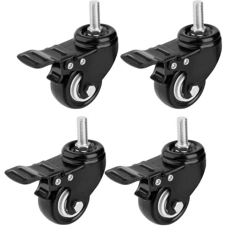diametro della ruota in gomma PU 2 pollici (50 mm) Lo stelo e la ruota verranno fissati se il freno viene premuto verso il basso Delicatamente spostato senza segni, non danneggerà il tuo pavimento in legno 4 ruote girevoli con freno e 4 dadi