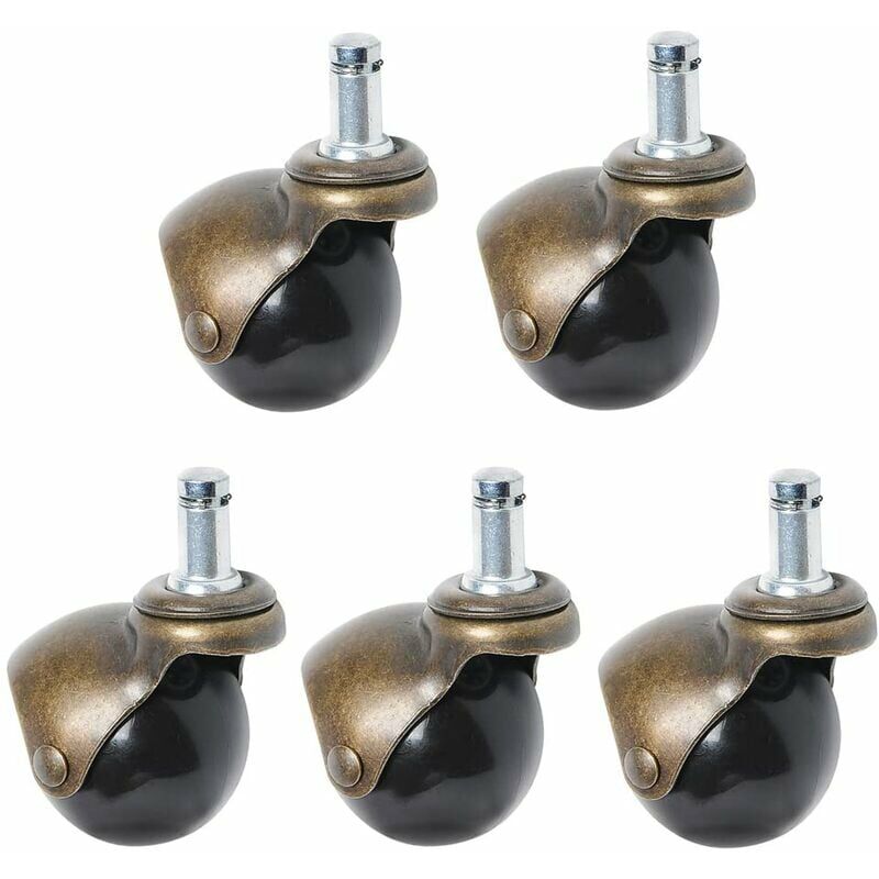 Non danneggia il pavimento: le ruote sono in polipropilene e metallo. Il supporto è in metallo color bronzo che non sbiadisce. Corpo cuscinetto in acciaio estremamente resistente all'usura e allo sporco. La rotazione regolare e silenziosa previene i danni ai costosi pavimenti in legno e piastrelle e persino ai tappeti. Legni duri come legno duro, piastrelle, pietra, laminato, ardesia, ecc. Silenzioso e liscio: liscio e quasi silenzioso per il tuo comfort abitativo e non graffierà i tuoi pavimenti in legno. Le rotelle girevoli con cuscinetti a sfera rotolano senza scricchiolii o rumori. Gira e rotola liberamente e silenziosamente in qualsiasi direzione senza manutenzione. Parametri principali: compatibile con le dimensioni standard del marchio (diametro dello stelo: 11 mm), lunghezza dello stelo: 22 mm, diametro della ruota 50 mm, altezza di installazione 63 mm, grado 360° ruota girevole. La capacità di carico di ciascuna ruota è di 50 kg. Facile montaggio: il set di ruote può essere