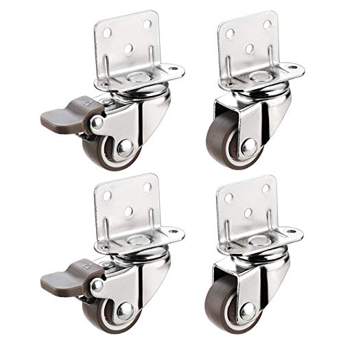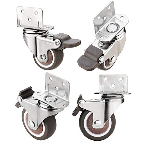 OWUV 50mm Ruote Girevoli Silenziose per Mobili (75kg / 4 Pezzi), Piastra di Montaggio A Forma di L, Rotelle Pivotanti Ricambio con Freno, per Supporto Piante/Carrello/Lettino/Tavolo/Comodino