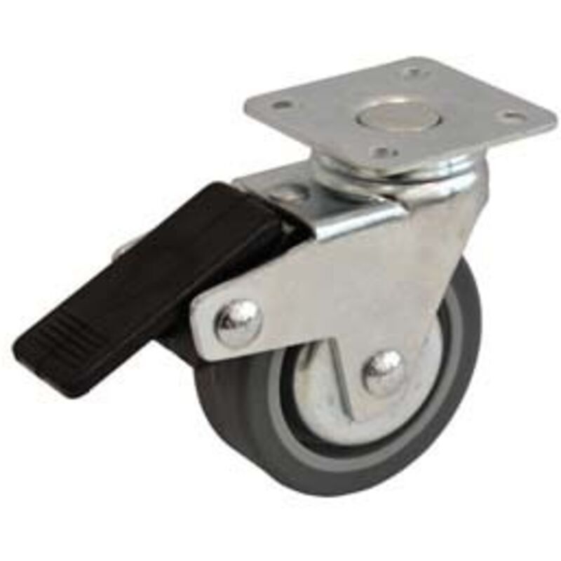 Ø mm.50x18 piastra mm.40x40 mm.66h. 20dan supporto in acciao zinco-cromato stampato rotante su dobbia corona di sfere, con dispositivo di bloccaggio ruota - ruota in gomma sintetica grigia flangiata in termoplastico - con dischi parafili e freno - l'impiego è consigliato per mobili d'ufficio, espositori, elettrodomestici, attrezzature ospedaliere, etc. Categoria merceologica: Ruote - Ferramenta - Ruote per mobili