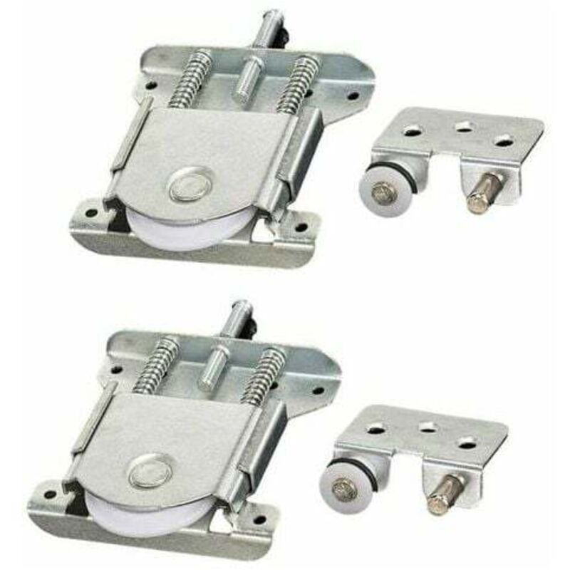 KIT RULLI PER ANTE SCORREVOLI DELL'ARMADIO: La confezione include 2 ruote per ante scorrevoli e 2 accessori. MATERIALE RULLO PER ANTE SCORREVOLI: Le ruote per ante scorrevoli dell'armadio sono realizzate in lega di ferro ecologico, resistente e durevole, resistente e non sbiadisce facilmente. CAPACITÀ DI CARICO: 20KG. Rendi la tua vita più comoda, non hai più bisogno di un riparatore e non c'è bisogno di cambiare un nuovo guardaroba FUNZIONAMENTO SILENZIOSO: il design della puleggia offre una migliore vestibilità e uno scorrimento più fluido, stabile e sicuro da usare. Con il tampone di smorzamento, funzionerebbero in modo silenzioso e solido, proteggendoti da rumori forti e potenziali lesioni dovute all'improvviso sbattere della porta. APPLICAZIONE: si adatta alla maggior parte delle porte scorrevoli di armadi, armadi, finestre, ripostigli, guardaroba, vetrine e scarpiere, ecc. Set 2 pezzi ARMADIO ANTA SCORREVOLE, GUIDE ANTA SCORREVOLE con ammortizzatore, portata 20 kg >La