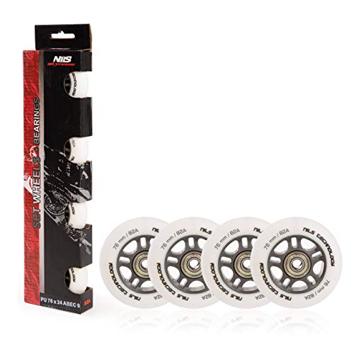 NILS Ruote in linea con cuscinetti a sfera, set da 4 pezzi, ruote ABEC 9, cuscinetti 64-80 mm (bianco, 64 mm)