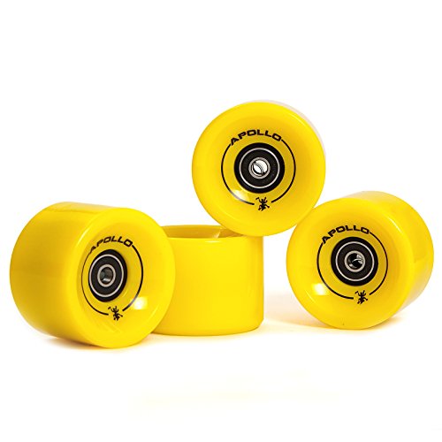 Ruote per longboard, ruote professionali, set di ruote, ruote | 78A - 70mm | dell'esclusivo marchio di tendenza Apollo | incl. cuscinetti a sfera ABEC-7 | Colore: solid yellow - Ruote di riserva