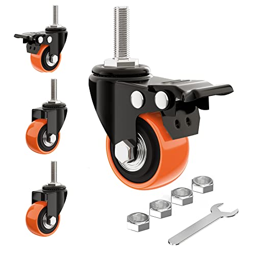 4 ruote per mobili, 40 mm, ruote per mobili, ruote pesanti con listelli da 180 kg, ruote da 40 mm (diametro 8 mm, lunghezza manico 25 mm), ruote girevoli a doppia rotazione a 360 gradi (arancione)