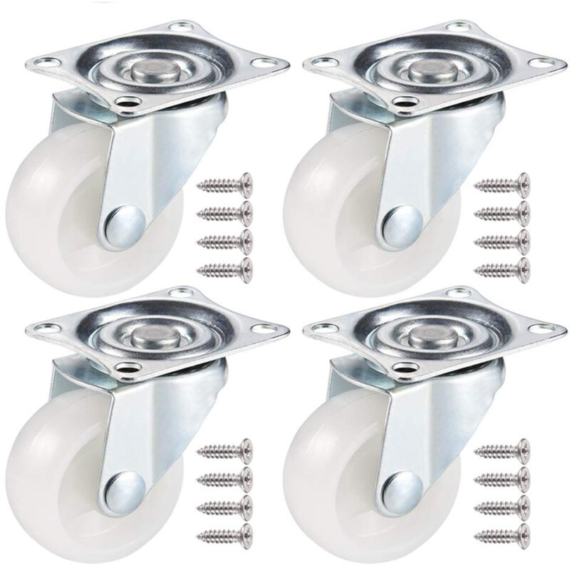 Cuscinetto a sfera 1. Con una testa girevole a doppio cuscinetto a sfera, le robuste rotelle girevoli possono ruotare di 360 gradi e muoversi liberamente. 2. L'asse delle ruote girevoli è dotato di una doppia testa girevole con cuscinetto a sfera, più efficiente dei tradizionali cuscinetti solidi. Robustezza e durata 1. L'elasticità delle ruote in gomma combinata con una robusta struttura in metallo. 2. Le ruote girevoli in poliuretano (PU) sono più silenziose e non graffiano il pavimento. Ampiamente utilizzate 1. Le ruote piroettanti per mobili possono essere utilizzate in case, garage, negozi e ospedali. 2. Tavoli, tavolini, librerie, scarpiere, carrelli e carrelli. Facilità d'uso 1. Le ruote piroettanti sono fornite con le viti e i cacciaviti necessari. 2. È possibile montarle molto rapidamente Diametro delle ruote: 40 mm Capacità di carico per ruota: 20 kg Capacità di carico totale: 80 kg Quantità: 4 pezzi