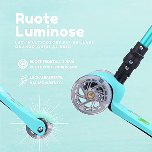 ⚖️ LEGGERO & PIEGHEVOLE- Una volta che il tuo bambino è stanco di guidare il monopattino PIEGHEVOLE può essere piegato per riporlo, tirato in stile trolley sulla strada di casa o aiutandolo con una cinghia a puleggia per monopattino.