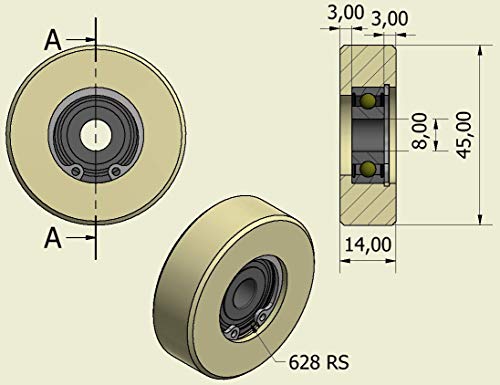 4 ruote in nylon 45-14-8, in poliammide, diametro 45 mm, larghezza 14 mm, cuscinetto 8 mm, realizzati con precisione nell'Unione Europea