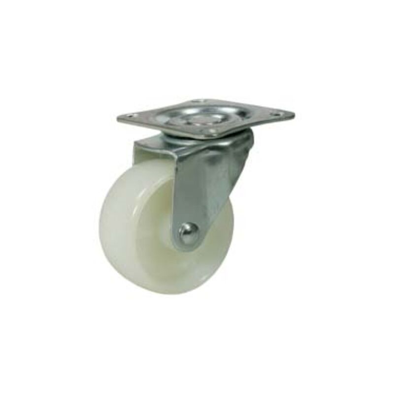 Ø mm.40 (piastra mm.38x38) ruota in polimero termoplastico, supporto maggiorato in lamiera stampata e zincata, rotante su corona di sfere, colore ruota: bianco Categoria merceologica: Ruote - Ferramenta - Ruote per mobili