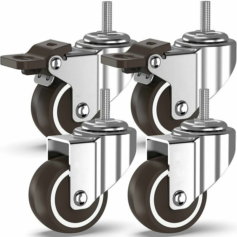 Ruote girevoli - Heavy Duty - Rotelle per mobili con rotazione a 360 gradi Ampia gamma di usi - Ideali per fai da te e casa industriale, scuola, negozio, garage, auto e ospedale, ruote perfette per spazi piccoli per piccole attrezzature e mobili come tavolini da caffè, piante, librerie, cestini per scarpe, pattumiera, carrello della spesa, banco da lavoro, contenitori sotto il letto RUOTE HEAVY DUTY - Capacità di carico 200 kg (50 kg per ruota) - 2 ruote girevoli con freno e 2 senza freno - Vite filettata M10 x 25 mm QUALITÀ PREMIUM - Il rullo in gomma offre la resistenza delle ruote unita alla durezza e alla durata delle ruote in metallo. Sicuro per tutti i tipi di pavimenti