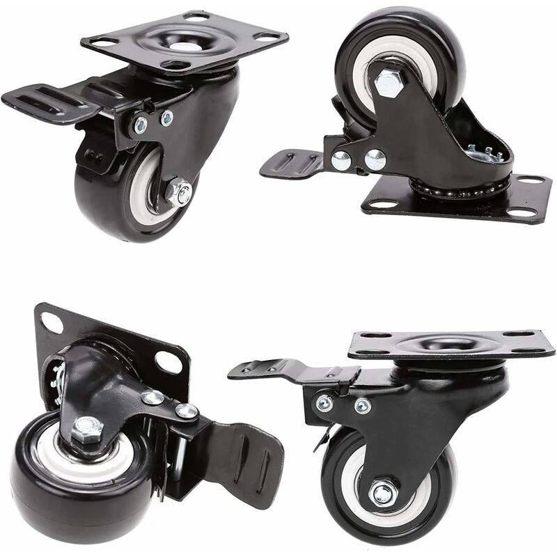 sulla confezione del nostro prodotto. Diametro ruota: 50 mm. Lotto consegnato con 4 ruote piroettanti con freno. Materiale: Ruota in gomma, piastra in acciaio ultra resistente. Rotazione: 360 gradi, durevole, silenzioso, non lascia tracce. Ideale per il fai da te a casa. applicazioni industriali, giardino, casa, scuole, garage, carrelli, ecc. Capacità;