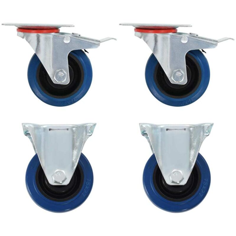Questo set, composto da 16 rotelle, costituisce l'accessorio perfetto per attrezzature e mobili di piccole dimensioni come banchi da lavoro, carrelli, tavolini da caffè, piantane, scaffali, carrelli della spesa, etc. Le ruote sono realizzate in gomma, un materiale che si distingue per una buona resistenza agli urti e alle vibrazioni e che consente alle ruote di girare in modo fluido e silenzioso. La loro superficie morbida, inoltre, protegge efficacemente il pavimento dai graffi. La struttura in ferro zincato è altamente resistente alla ruggine e garantisce maggiore robustezza e durata delle ruote. Metà delle ruote girevoli sono dotate di sistema frenante per garantire una maggiore flessibilità di utilizzo. Ogni ruota ha una capacità di carico massima pari a 60 kg. La consegna include 8 ruote fisse e 8 ruote girevoli con freno. Colore: Blu Materiale: Gomma e ferro zincato Diametro della rotella: 75 mm Dimensioni piastra: 81 x 67 mm (L x P) Capacità di carico massima: 60 kg per ogni