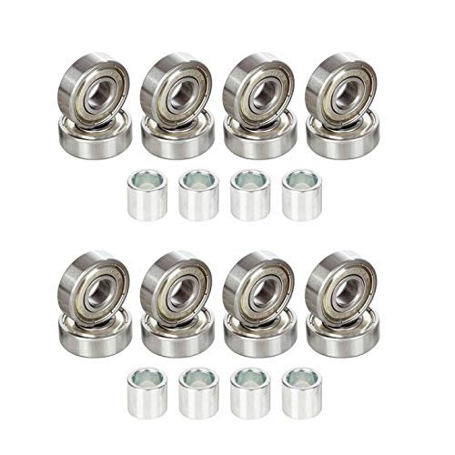 Cuscinetti Abec-9-Chrome: Materiale: Acciaio al cromo, Larghezza: 7mm, Diametro interno: 8mm, Diametro esterno: 22mm, Standard: 608ZZ, Applicazione: pattinaggio artistico, Set: 16 pezzi, Boccole distanziatrici: 8 pezzi