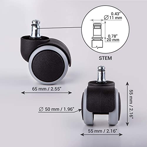Ruote di ricambio da 50 mm in gomma per sedia da ufficio, con doppia ruota mobile, non graffiano