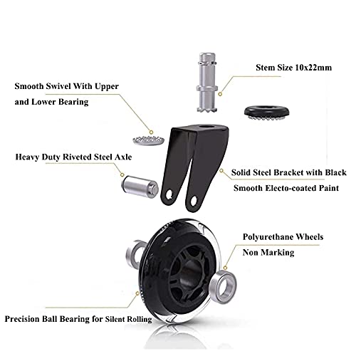 【Dimensioni】 Le rotelle silenziose della sedia includono un albero standard di 10 mm x 22 mm di lunghezza. Prima di ordinare, ricontrolla le dimensioni della ruota della sedia per assicurarti che si adatti. Può essere ruotato di 360 °.