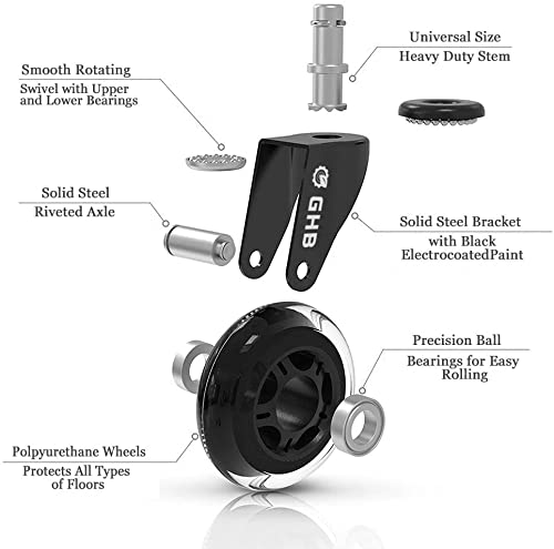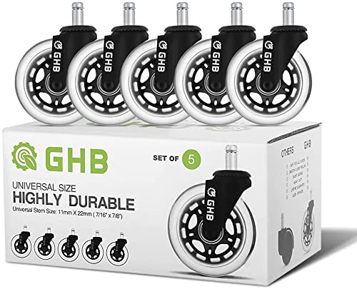 GHB 5 ruote per sedia da ufficio, 11 mm x 22 mm, cuscinetto silenzioso e resistente all'abrasione