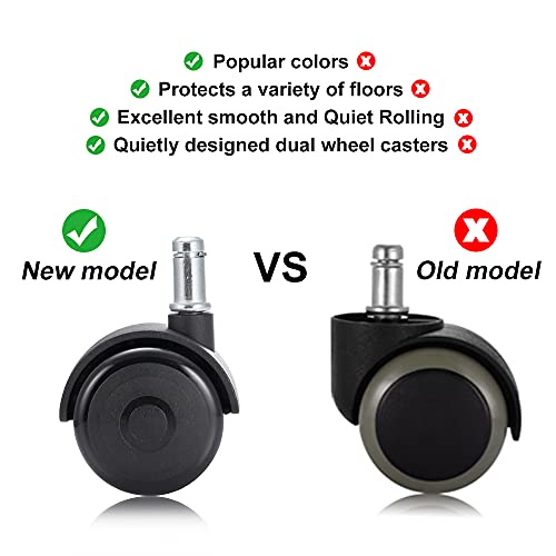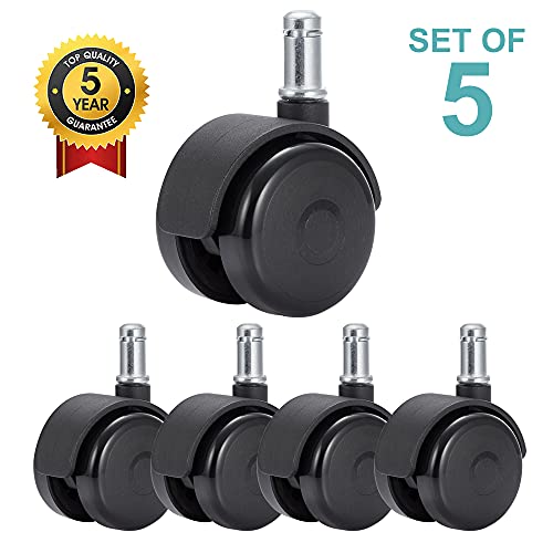 Set di 5 ruote per sedia da ufficio - 11 mm x 22 mm - Rotelle molto silenziose per sedia da ufficio - Niente più graffi sul pavimento grazie a queste ruote premium da 2 pollici di colore nero puro