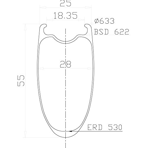 Pieno carbonio 55mm profondità 25mm larghezza copertoncino ruote tubeless-ready