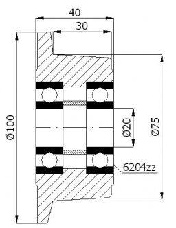 Ruote diametro [mm] = 100 asse foro Diametro [mm] = 20 mozzo lunghezza [mm] = 40 larghezza ruota [mm] = 30