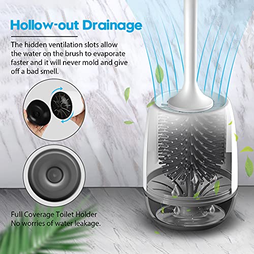 Durevole ed efficace - Le setole sono realizzate in materiale TPR e non è facile da indossare. La testina flessibile aiuta a pulire efficacemente le aree all'interno della toilette, in particolare le scanalature, ma non graffierà la superficie della toilette. Si consiglia di utilizzarlo insieme al detergente per WC. Questa spazzola è resistente alla corrosione e non arrugginisce, durando per mantenere l'aspetto più recente e decente.