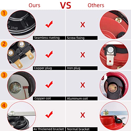 【Materiale di Alta Qualità】 Il clacson da 12 V ha una staffa di montaggio fissa alta, bobina a spirale in rame puro, guscio in plastica tecnica ABS, diaframma super rumoroso. Vieni con materiale eccellente, il design scientifico può ottenere un suono ad alta potenza e la durata della vita più lunga