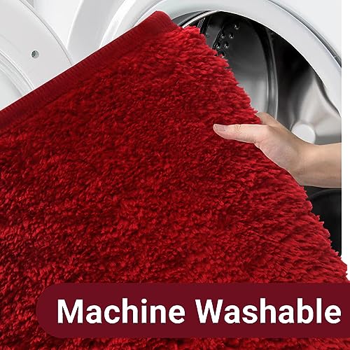 Rururug Set di tappetini da bagno in microfibra lavabile, set di 2 tappetini da bagno antiscivolo per bagno e WC, tappeto da bagno rosso 50 x 80 cm+50 x 40 cm