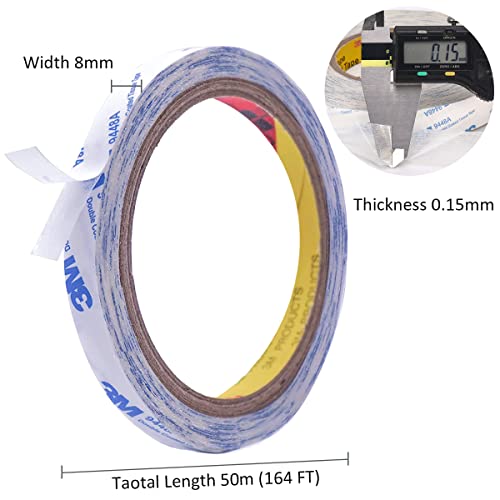 Rusoz Nastro Biadesivo 9488A, Trasparente Nastro Adesivo Forte Sottile Larghezza 8mm, Lunghezza 50m, Spessore 0,15mm per Artigianato, Lavorazione Manuale