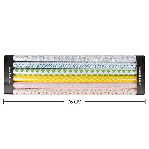 RUSPEPA Carta da Regalo Kraft - Carta da Regalo Stampata Multicolore per Compleanni, San Valentino, Natale - 6 Rotoli - 76 cm X 305 cm per Rotolo - Multicolore