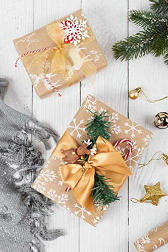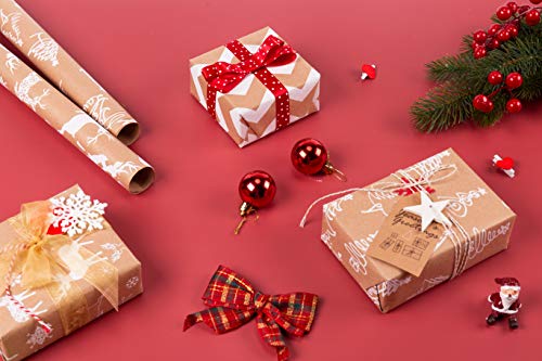 ALTA QUALITÀ: carta da regalo kraft piuttosto spessa, RENNA BIANCA KRAFT, FIOCCO DI NEVE BIANCO KRAFT, ALBERI BIANCHI KRAFT, design CHEVRON BIANCO KRAFT perfetto per regali di Natale, feste e altri usi.