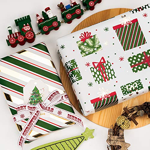 DESIGN PERFETTO: il regalo di Natale verde e la striscia di diversi disegni natalizi ti danno una sensazione diversa. Questa carta da imballaggio ha una finitura lucida liscia per rendere nobile il tuo regalo.