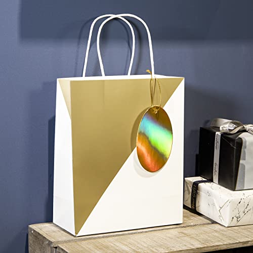 RUSPEPA Sacchetti Regalo Medi Con Manici (Confezione Da 8, Oro E Bianco) Con Etichette Regalo Per Matrimoni, Compleanni, Baby Shower, Bomboniere