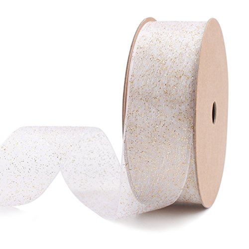 RUSPEPA 26 mm Sheer Organza Ribbon con Glitter Oro, 10 Metri (B006)