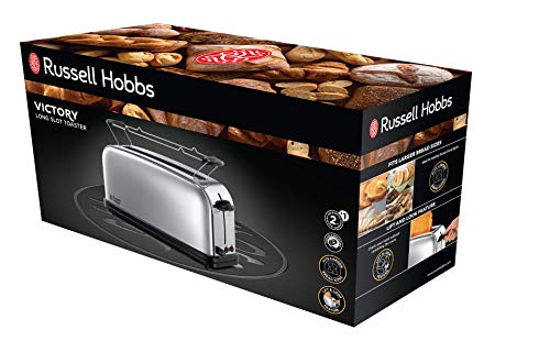 Russell Hobbs Tostapane Lungo, 2 Fette di pane larghe, 1200 W, Griglia inclusa Scaldapanini, Toast, Scaldabrioche, Scongelamento, Raccoglibriociole, Temperatura regolabile, Victory 2LS, 23510-56