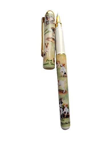 Jack Russell Terrier Gift. Bella penna roller con sacchetto di velluto nero.