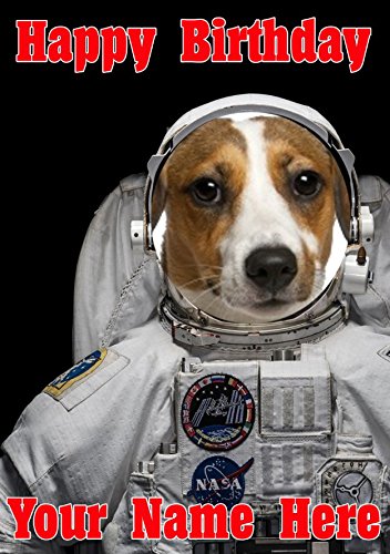Jack Russell Terrier J295 Spaceman Astronaut Fun cute Happy Birthday A5 auguri personalizzato Posted by US Gifts For All 2016 from Derbyshire UK