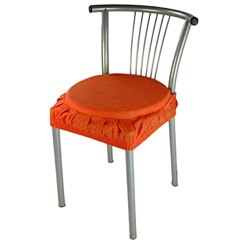 Russo Tessuti Set 6 Cuscini Sedie Rotondi Cucina Coprisedia Elastici Imbottiti Tinta Unita-Arancione