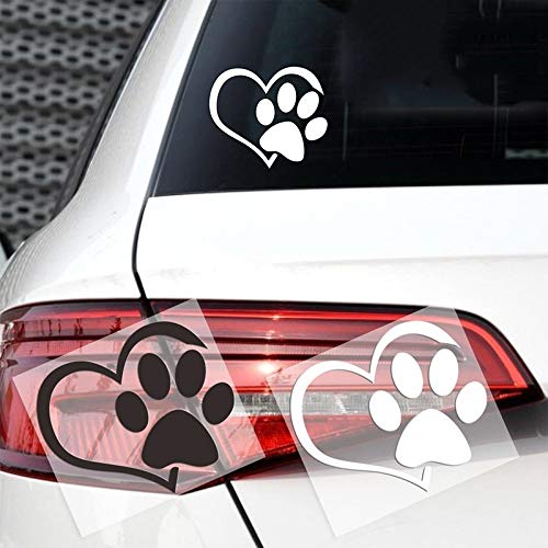 RUSTOO Adesivi per Auto in Vinile, Zampa di Cane Simpatico Cartone Animato con Cuore di Pesca Adesivo per Auto Animale Cane Gatto Amore Pet Car Decal