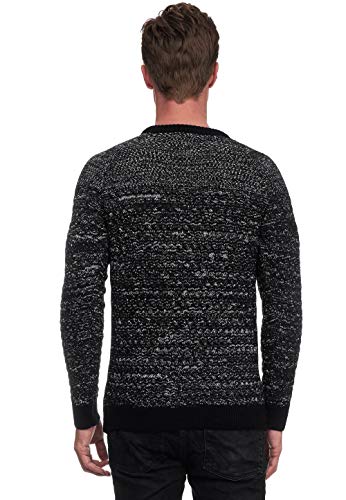 Rusty Neal - Pullover da uomo con collo arrotondato e bottoni, maglione invernale Chiner lavorato a maglia grossa maglia calda, collo rotondo, ideale come regalo di Natale, San Valentino 13363 Nero L