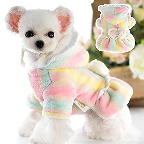 Rutaqian Abito per Animali Domestici, Gonna per Gattini di Cucciolo, Vello di Corallo Vestito alla Moda per L'autunno, l'inverno Giallo Rosa XS.