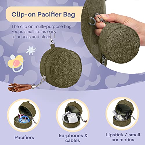 RUVALINO Borsa Zaino Fasciatoio, Zaino Mamma Multifunzione con Fasciatoio Portatile, Porta Ciuccio e Cinghie per Passeggino, Borsa Fasciatoio per Viaggiare Mamma Papà, Verde Militar