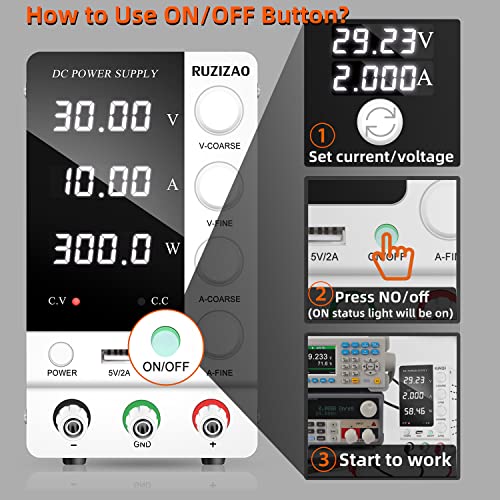RUZIZAO Alimentatore da Banco 30V 10A DC Regolabile Stabilizzato Lateralmente Alimentatore da Laboratorio DC Regolabile Stabilizzato Display a 4 Cifre