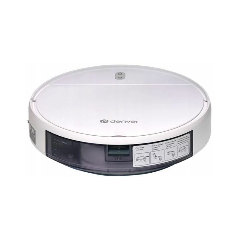 Denver RVC-110. Tipo di contenitore della polvere: Sacchetto per la polvere, Colore del prodotto: Bianco, Forma: Rotondo. Capacità polvere (totale): 0,2 L, Emissione acustica: 65 dB, Capacità tanica acqua: 0,23 L. Capacità della batteria: 2400 mAh, Durata di funzionamento: 95 min, Tensione di ingresso AC: 230 V. Altezza: 75 mm, Larghezza: 300 mm, Profondità: 300 mm. Larghezza imballo: 345 mm, Profondità imballo: 128 mm, Altezza imballo: 400 mm